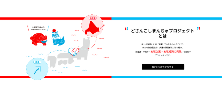 端(北海道)と端(沖縄)で力を合わせて、新しいアイデアを基に社会的意義のある新たな価値を創造し、社会に大きな変化をもたらす人・モノ・仕組みを促進させ、沖縄と北海道、さらには日本を元気にし、世界から愛される場所にすることを目指すプロジェクトです。北海道と沖縄の魅力を伝え、ファンを増やし、地方創生の最先端モデルになれるような、新しい取り組みを本プロジェクトで推進して行きます。