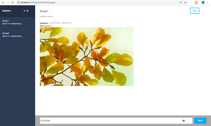 TECH::EXPERTにて制作(マークアップ〜デプロイまで自力で行う) 個人開発 ーーーーーーーーーーーーーーーーーーーーーーーーーー アプリ概要:グループチャットができるアプリ <実装> ■データベース設計 ■フロント作成(Haml、Sass) ■新規登録機能(ユーザー登録、グループ登録) ■編集機能(ユーザー情報編集、グループ情報編集) ■グループ内でのチャット機能 ■複数人によるグループチャット機能 ■チャット相手の検索機能 ■チャットグループへのユーザー招待機能 ■チャットの履歴表示機能 ■画像送信機能 ■チャットの自動更新 ■デプロイ機能(capistranoを使った自動デプロイ) ーーーーーーーーーーーーーーーーーーーーーーーーーー
