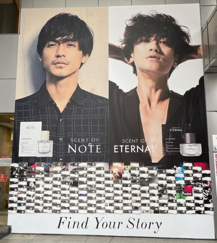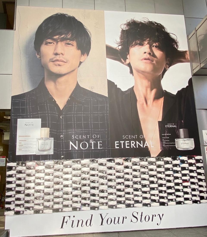 【屋外ピールオフ広告】錦戸亮・赤西仁プロデュースの香水「SCENT OF NOTE」「SCENT OF ETERNAL」