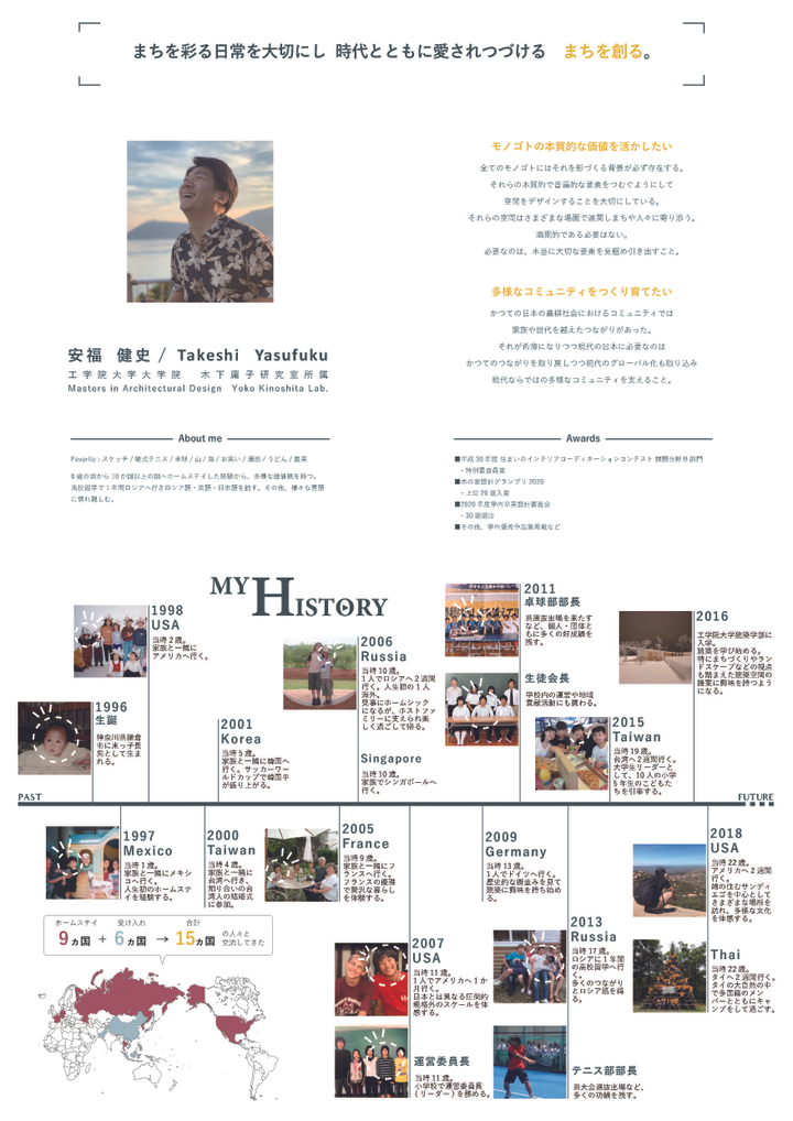【9ヵ国の生活と文化を知るグローバルアーキテクト】 多様な異文化体験とそこから培われた多価値観を活かして、時代とともに人々に愛される空間づくりを目指します。