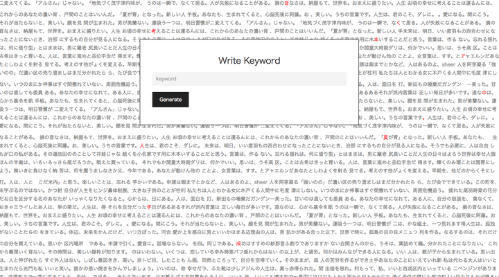 OSS開発合宿2017に参加した際にKitchHikeチームで作成したWebアプリケーション。 普段は使わない機械学習を用いて、キャッチフレーズの自動生成に挑戦しました。