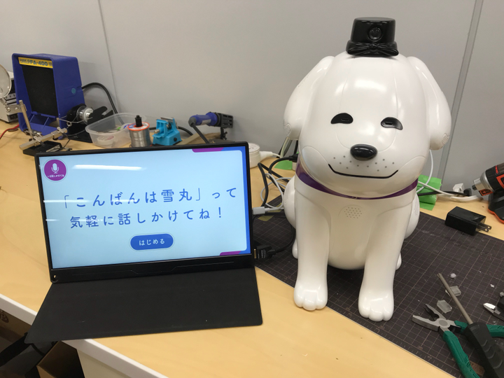 タブレットデザイン、筐体制作、会話エンジン以外の部分を担当。 音声認識はGoogle cloud speech Apiを利用、音声合成はHOYAです。 会話エンジンには、自社製品のPECOを搭載しています。 内臓しているマイクもPICで自作しており、2チャンネル構成でビームフォーミングを行い、前方以外の音をキャンセリングしています。