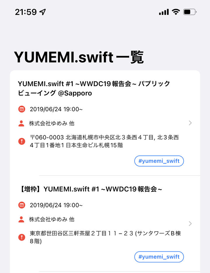 connpass の APIを叩いて YUMEMI.swift の勉強会のイベントを取得してリスト表示するサンプルアプリ。SwiftUI で実装。