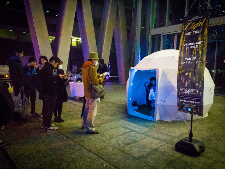 御堂筋イルミネーションを上空140mからみる幽体離脱体験を提供するVRアトラクション