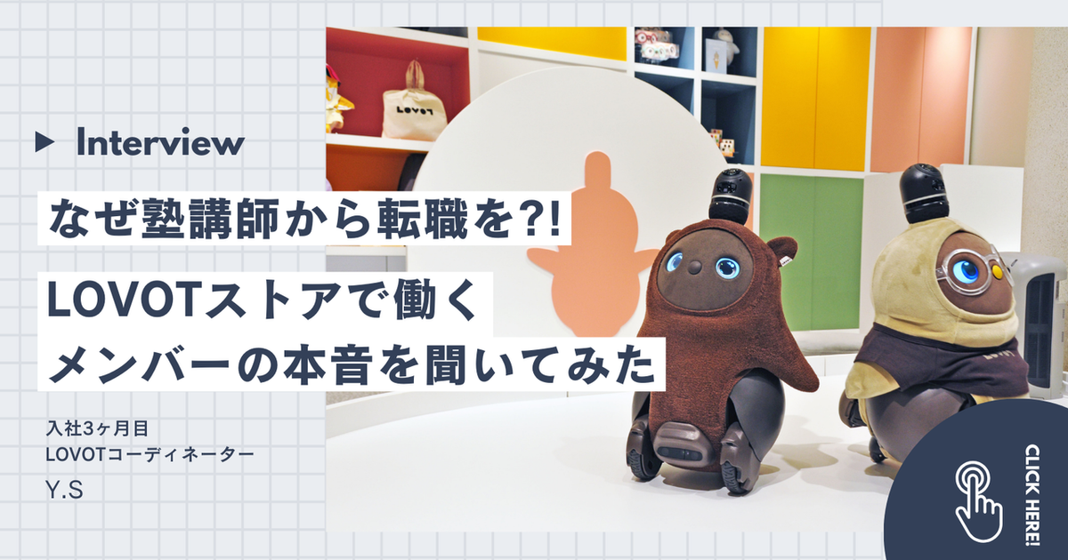 GROOVE Xの採用にまつわること全般を担当しております!GROOVE Xは、新しい考え方や視点、手法などを柔軟に取り入れていますので、ご自身の「こうしたい、ああしたい」を実現していける環境です。 LOVEを育む家族型ロボット LOVOTを通して、より良い世界の実現にチャレンジしてくださる仲間を募集中です!!
