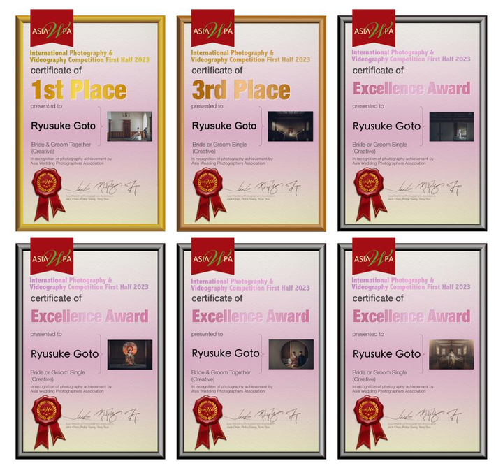 アジア最大級のフォトコンペティション、Asia WPA international photography & videography competition first half 2023にて、1作品が1st PLCAE(世界1位)を受賞、1作品が3rd PLACE(世界3位)を受賞、他5作品がExcellence award(入賞)を受賞することができました。