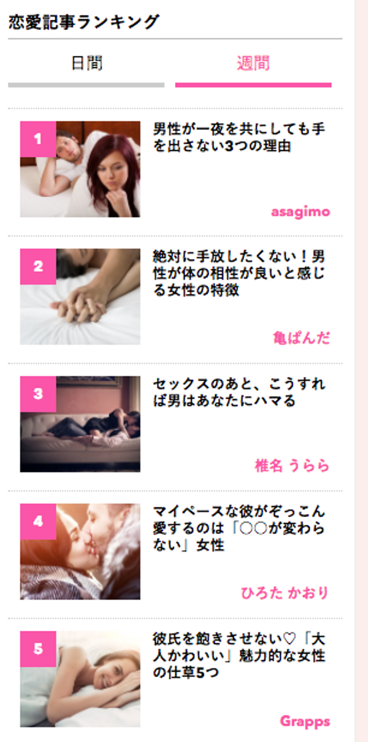 恋愛サイト「Grapps」の恋愛記事週間ランキングにて1位を獲得した記事です。