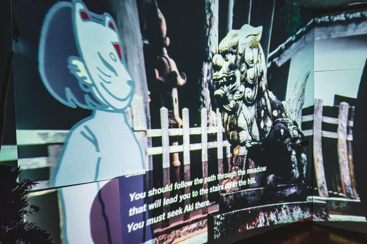 Tsuikyuu Museum offers both, a new form of immersive media production and an audio-visual product. A designed system that offers an interactive story-telling experience where a live-action video with integrated 2D animations is projected into an immersive space. The viewer can be part of the narrative by making their own decisions through an instant messaging mobile application. This new form of experience provides to the user a different vision of audio-visual content that promotes active involvement while making them part of the environment.
