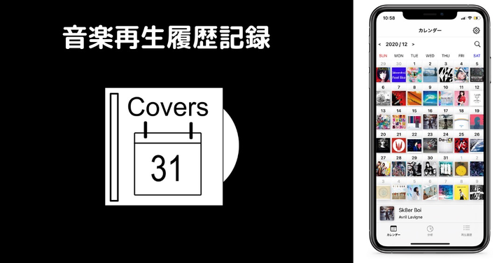 Apple musicの再生履歴を取得してrealmに保存してカレンダーの日付ごとにジャケ写を表示するアプリです。 自分が昔どんな曲を聴いてたか思い出してエモい感情になるのが好きで作りました。