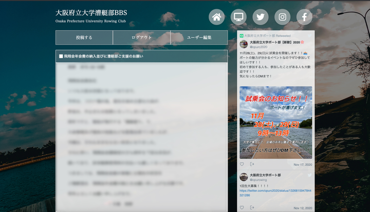 部活動の掲示板サイトを作り直しました。 掲示板サイトには問題があり、色も単色でスマホに非対応、さらに画像も投稿できない最悪な状態でした。 そこで、「オリジナルサイトを作れば素早く投稿でき、ボート部を応援してくれる人が増えるのではないか」と考え、プログラミングを学び始めて3ヶ月で新サイトを作成。 OBが迷いなく使ってもらい、サイトに沢山訪れてもらうにはどのような設計、UIが良いだろうか。どんな機能を付け足そうか。 このように相手目線でその先の気持ちまで考えた結果、称賛の声をいただきました。 部活を通して、現状をより良いものにする力、責任を持ち細部までこだわる力を身に付けられたと感じます。