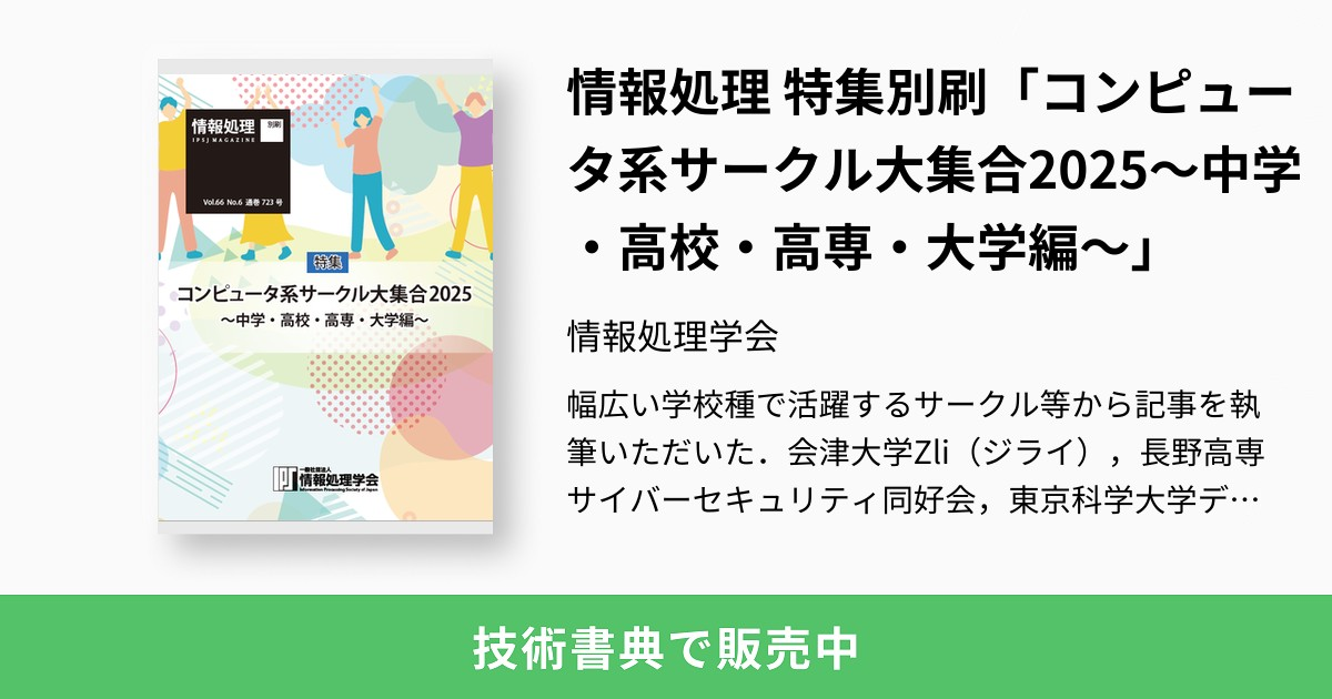 情報処理学会の学会誌「情報処理」の編集を担当しています.主に技術書典への出展が担当業務で,巻頭コラムや特集を担当することもあります.