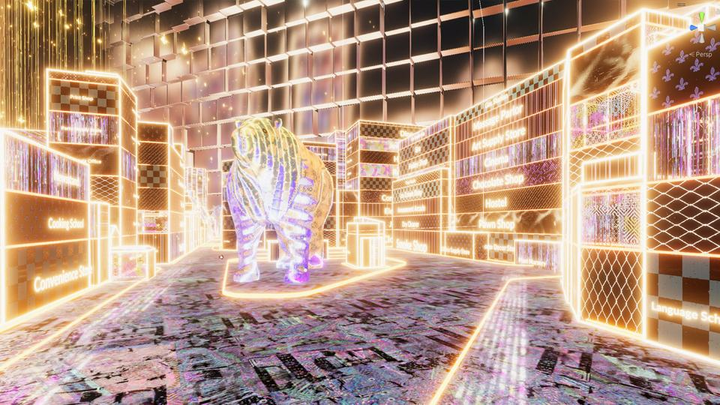 新小岩駅南口周辺のplateauデータを使用した都市をキャンバスとしたメタバースアート作品です。 まず、街の3D形状の俯瞰というところで、街の中を歩けるだけでなく、視線の高さをランダムで変更可能なギミックを組み込みました。視線の高さを無作為に変更できるリフトゾーンや、ランダムに浮いている星の島などで新しい視点を発見して街を楽しめるようになっています。 メタバースの長所であるリアルタイムコミュニケーションを加速させるために、プレイヤーにランダムに役割と部分的な情報を割り当て、ミッションを遂行する形のワールドの楽しみ方ができるような仕組みを組み込みました。 役割によって持っている情報が違うので、互いに情報を補完するためにはコミュニケーションが生じるはずですが、初めての試みなのでうまく機能するか試して頂けたら嬉しいです。 映画やアニメ等の映像作品、現実のアートやインスタレーション等と比べてメタバースが圧倒的に優位なのはそのリアルタイムコミュニケーションにあると考えました。 そのため、コミュニケーションを加速させるための話題の提供機能をワールドが持つことで、メタバースによって誘発されるコミュニケーションもアートの範疇であるのではないかと考えるに至ります。 最初はアプリダウンロードの敷居を低くするためにUnity6のURPでWebGL前提で全てを構築する予定で開発していました。 比較検討の結果、Clusterで既に用意されている機能や描画能力の素晴らしさを活かしやすかったので、今回は自分が今出せる物全てをこのメタバース空間にに投入しようと決めました。 メタバースを一つのアートメディアと捉えて都市や空をキャンバスにアート表現をするとしたらどうなるのか。都市型アートの一例として提案します。 現実を模倣するタイプのメタバースには現実という限界点が存在しますが、リアルを追求するのではなく、メタバースでできる表現の限界を追求したいと思いました。 例えば、PBRマテリアルに現実ではあり得ない値の反射を用いてノーマルマップと組み合わせたり、動的なシェーダーを掛け合わせたりすることで、現実世界では表現が恐らく不可能な表現に挑戦しました。 この作品は、まだまだ粗い表現ではありますが、UnityやClusterの描画能力のポテンシャルはこんなものではないはずなので、まだまだ開拓可能という事を色々な人に知ってもらえたら嬉しく思います。
