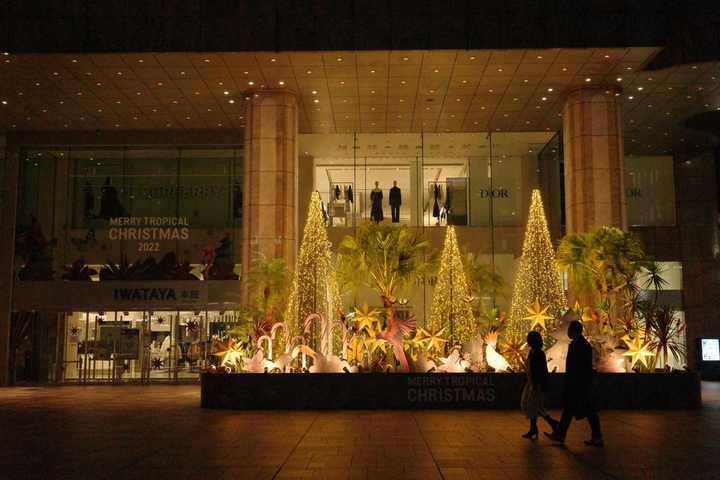 プロジェクトマネジメントを担当。 --- 福岡県の岩田屋三越さんにてクリスマス装飾を担当させていただきました。 キービジュアル制作、ストーリーメイキング、ディスプレイデザイン、期間中のパーティー会場装飾など、トータルでKOTOにてアートディレクションさせていただいています。 「南国のクリスマス」をテーマに展開され、南国の動物やクリスマスのモチーフも交え物語の世界に迷い込んだような、チャーミングな雰囲気に仕上がりました。 本館入り口のイルミネーションディスプレイは、岩田屋さんに向かう道からも、近くに寄って見ても、どちらも楽しんでいただけるよう、迫力とともに細部の作り込みも力を入れています。