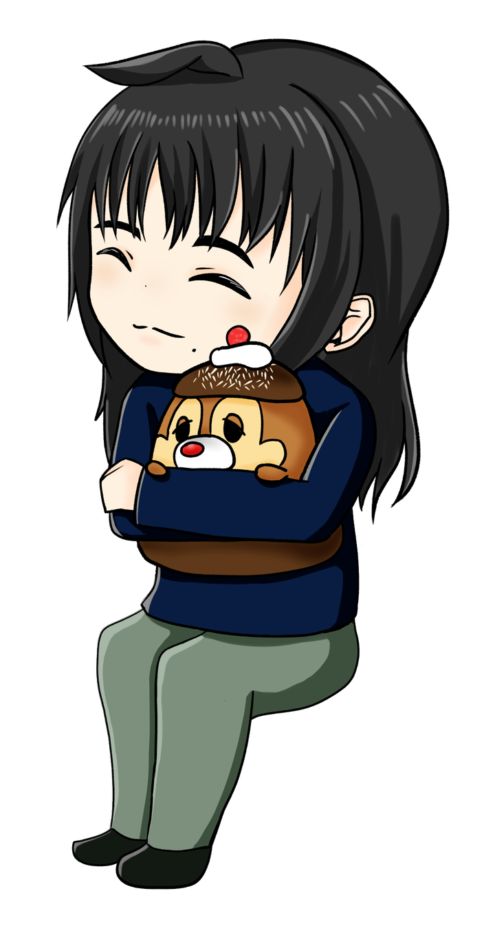 冊子のポートフォリオを作成するため自分の似顔絵を描こうと考えた際、一緒に大事にしているものも描きたいと思いました。そこで、枕元に置いている「くりまろん」という名前をつけているぬいぐるみを選びました。 大事なものだったのでポーズも抱きかかえているように描きました。