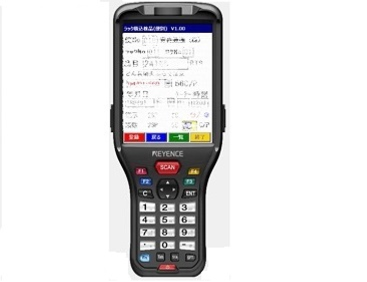 キーエンスのハンディターミナルを使用して、製品の入出荷検品を実施。 製品のダンボールに印字されている記号をスキャンし、OCRで文字変換。 工夫によりほぼ誤読なしで、入力の手間を省く事を実現しました。