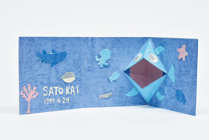 自分の愛しているものをテーマにCDジャケットをつくりました。僕は海が好きなので、海の生き物を表現してみました。デジタルよりもアナログの方が、自分の癖や表現が見えやすいと思い、紙を切って海の生き物をつくりました。