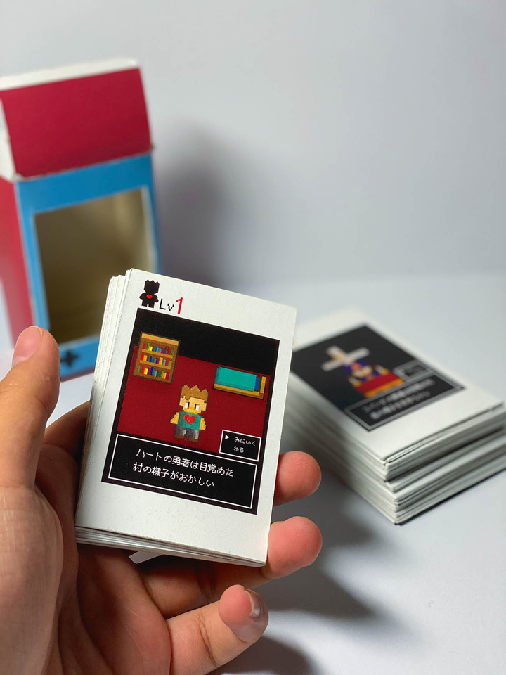 RPGゲーム風のトランプで、ハートの勇者、ダイヤの勇者、クラブの勇者、スペードの勇者それぞれのストーリーをつくりました。子供でも楽しめるようにわかりやすいストーリーにしました。