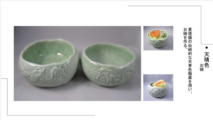 景徳鎮の伝統的な天青色釉薬を用い、 お碗を作る。