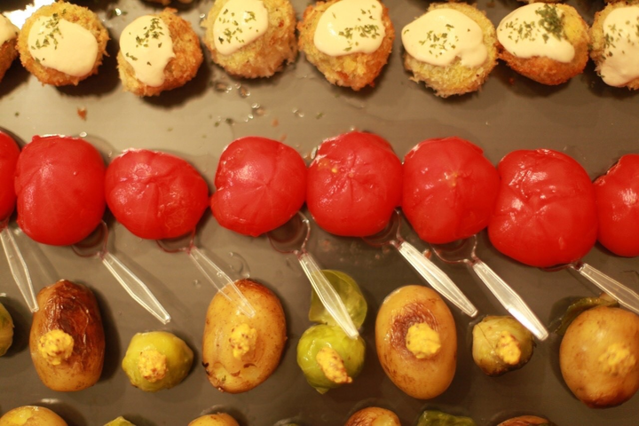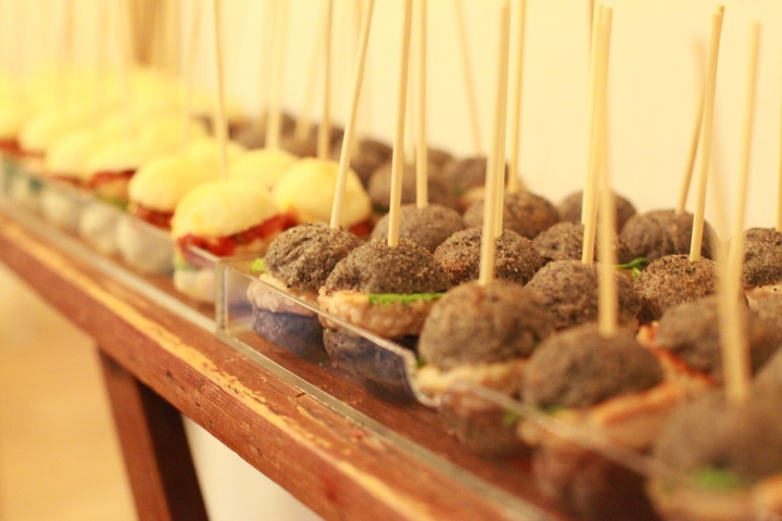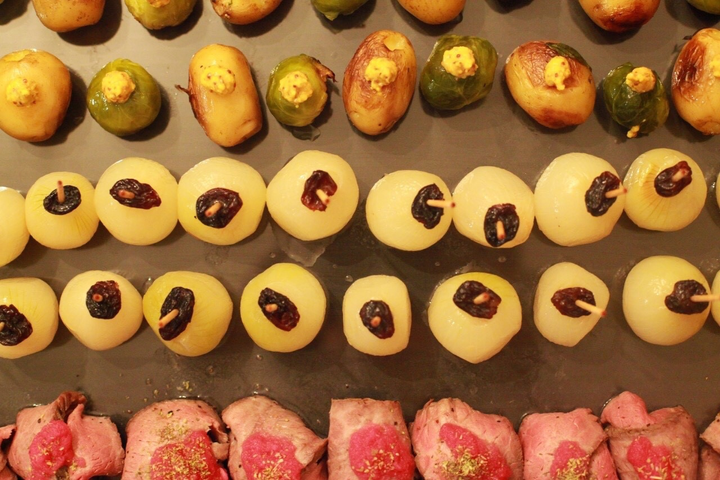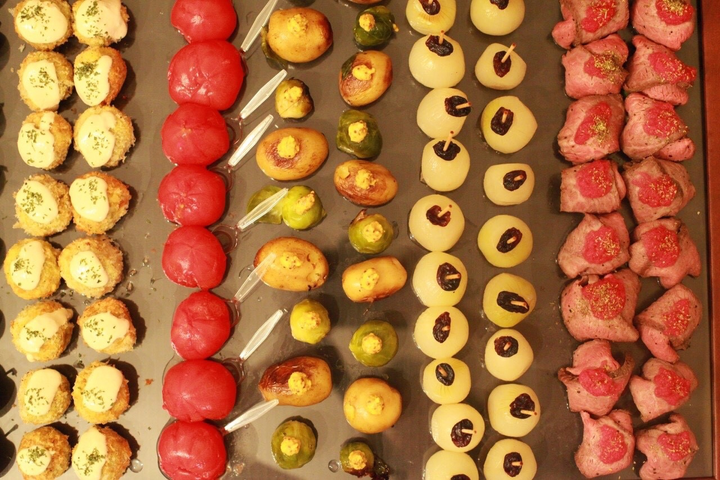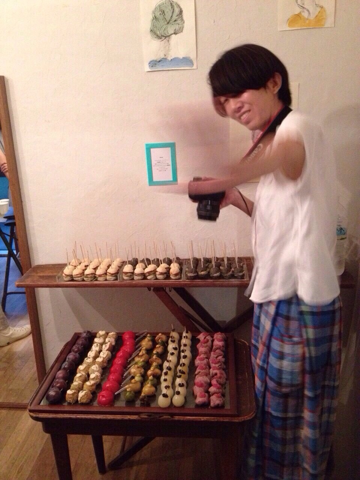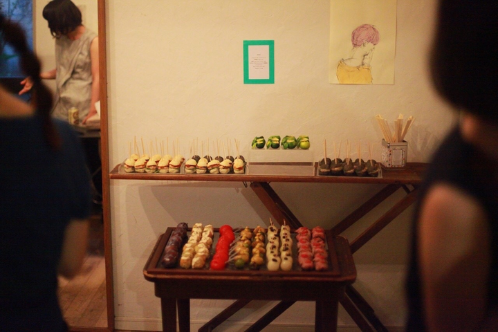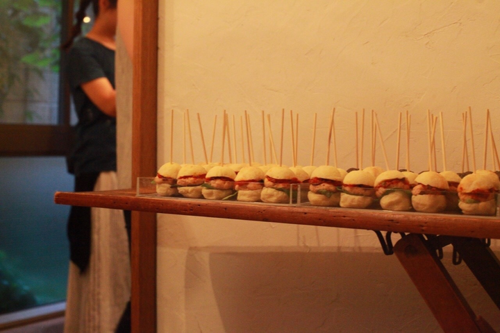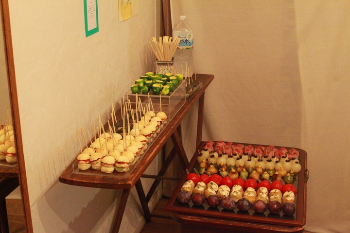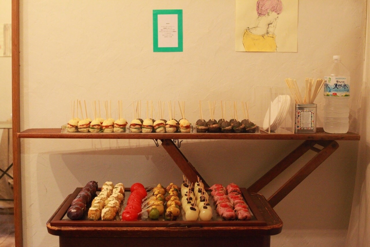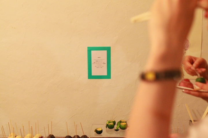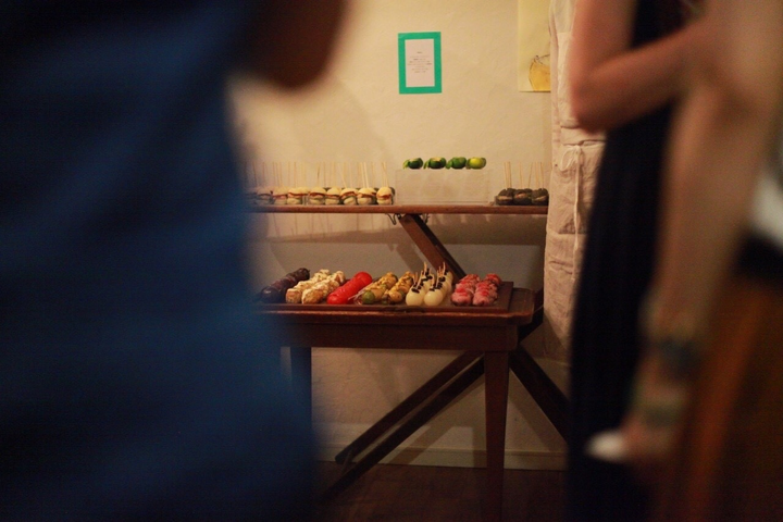 7月19日、友人のイラスト展示のオープニングのお料理を中山•鈴木で担当しました。 彼女のイラストに、後ろ姿ばかり描いた作品があります。顔が見えないイラストは、正面の自分だけが全てではなく後ろ側にももう一つの真実があるのではないかという問いから生まれたものです。 このコンセプトを料理にも引用しました。 食材や料理の新たな側面を楽しんでもらえるように、料理をすべて球体に統一しそれぞれの特徴を敢えて消しました。 口にした時に初めて気づくこと。 いつもとは違うように見えても、それは紛れもなくその食材そのものです。 menu •サーモンバーガー トマトチリソース •和風根菜つくねバーガー •ひよこ豆のファラエル •野菜といちじくのローストビーフ包み •すだちカップのとうもろこしムース 水蜜桃添え •トマトのピクルス •芽キャベツとジャガイモの蒸し焼き •たまねぎのレーズン煮 •プルーン