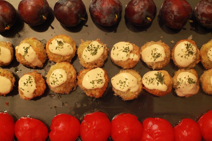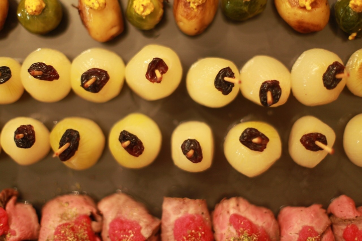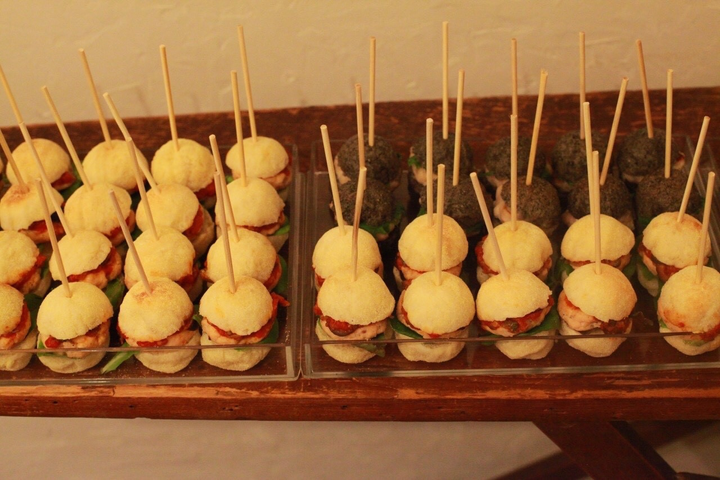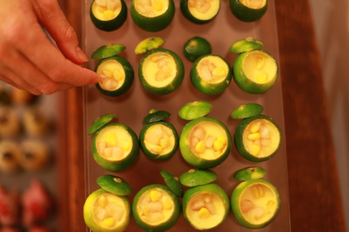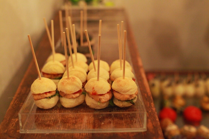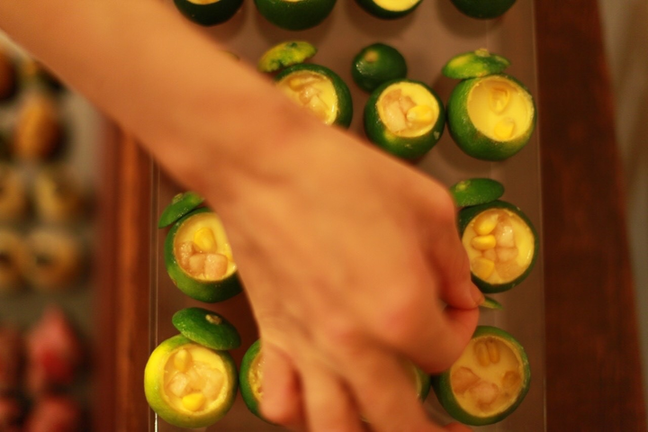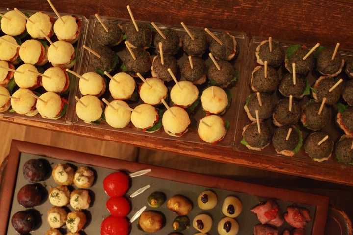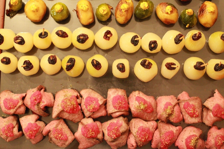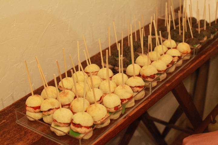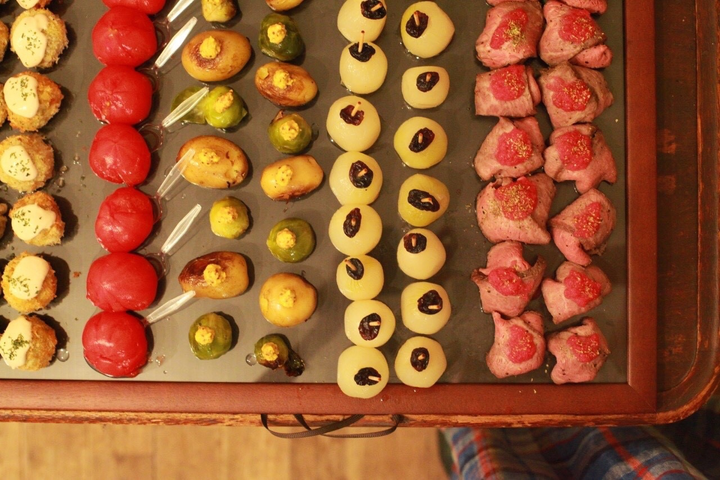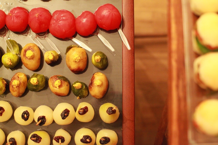 7月19日、友人のイラスト展示のオープニングのお料理を中山•鈴木で担当しました。 彼女のイラストに、後ろ姿ばかり描いた作品があります。顔が見えないイラストは、正面の自分だけが全てではなく後ろ側にももう一つの真実があるのではないかという問いから生まれたものです。 このコンセプトを料理にも引用しました。 食材や料理の新たな側面を楽しんでもらえるように、料理をすべて球体に統一しそれぞれの特徴を敢えて消しました。 口にした時に初めて気づくこと。 いつもとは違うように見えても、それは紛れもなくその食材そのものです。 menu •サーモンバーガー トマトチリソース •和風根菜つくねバーガー •ひよこ豆のファラエル •野菜といちじくのローストビーフ包み •すだちカップのとうもろこしムース 水蜜桃添え •トマトのピクルス •芽キャベツとジャガイモの蒸し焼き •たまねぎのレーズン煮 •プルーン