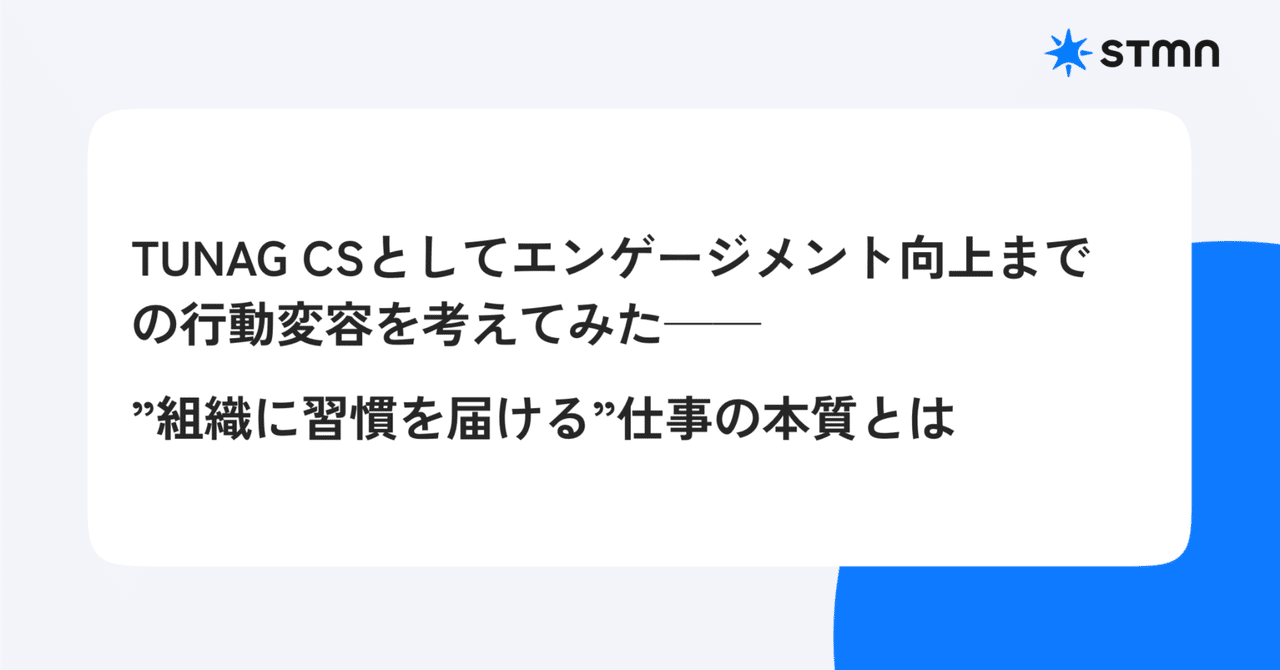 2018年3月 株式会社スタメンへ入社 - TUNAGの営業〜CSまでを経験 ※この頃はIS〜CSまでを一貫して担当 - 2018年11月にカスタマーサクセス部へ異動 - CSの立ち上げとTUNAG導入企業への活用支援からコンサルティング業務に従事(これまで300社以上