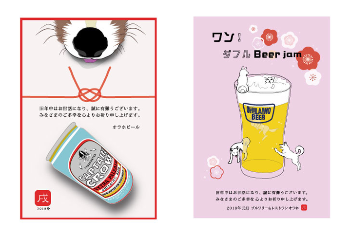 OLAHO Brewing(長野県東御市)の年賀状です。 個人でお受けしているお仕事では、ビール関係者からお仕事を頂くことが多いです。 こちらの年賀状は、2016年から3年連続でご依頼いただいています。 初回は、醸造所の年賀状だけでしたが、その後直営のレストランの分も含め作成しています。 主力商品がインパクトのあるデザインなので、それを活かすように淡いタッチの絵柄を描き、デザインすることが多いです。