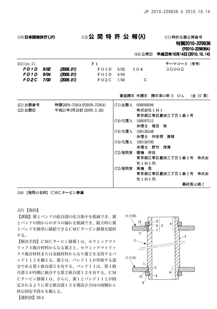 株式会社IHI勤務時に私が主で取得した特許です。現在、特許の権利はIHIが有しています。
