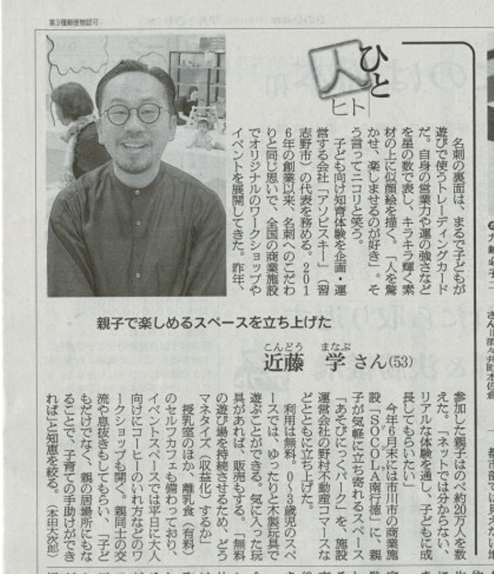 弊社代表 近藤への取材と、あそびにっくパーク ソコラ南行徳を取材いただきました。