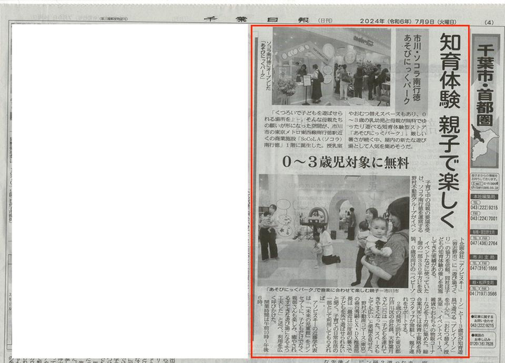 あそびにっくパーク ソコラ南行徳を取材いただきました。