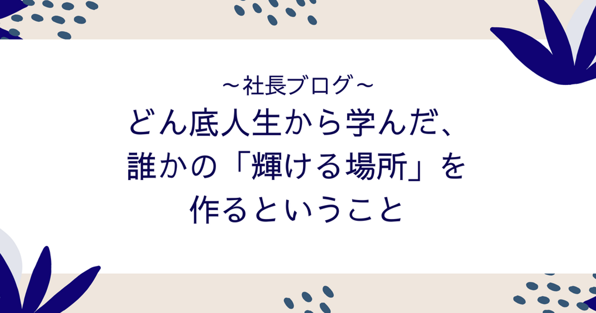 どん底人生から学んだ、誰かの「輝ける場所」を作るということ