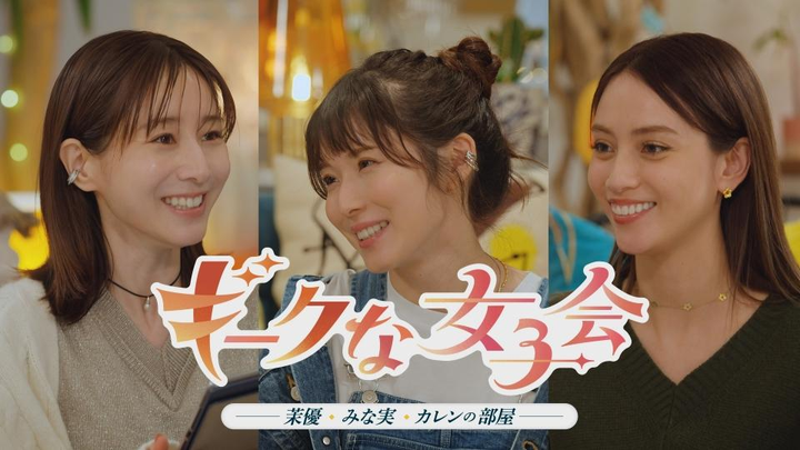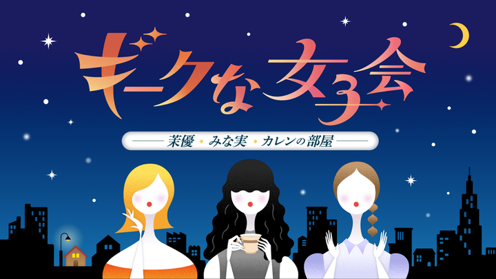 フジテレビ トークバラエティー「ギークスな女子会 〜茉優・みな実・カレンの部屋〜」のタイトルロゴ、イラスト