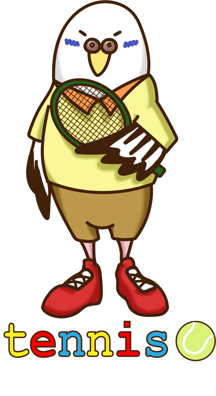 オリジナルのテニスウエアのイラストをデザインさせていただきました。インコちゃんが大好きということで、テニスとインコを中心にデザイン。