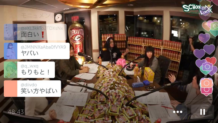 TOKYO FMラジオ番組「SCHOOL OF LOCK!」のサントリー・デカビタのPR番組にてPeriscopeを利用した生中継のディレクションを担当。番組にはヤバイTシャツ屋さんが出演し、10代を中心に数多くの視聴者を獲得しました。