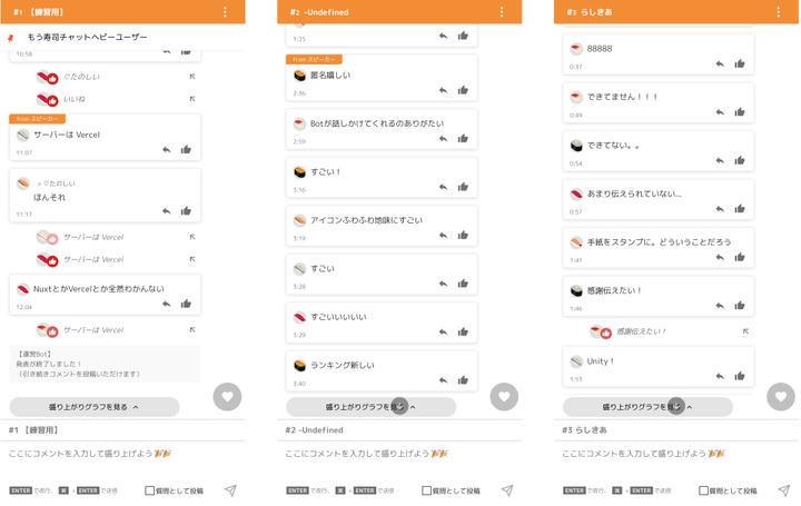 sushi-chatは、オンライン発表会に特化したチャットサービスです。一方向になりがちなオンライン発表会で、双方向性のあるコミュニケーションを実現することを目指しています。実際に使っていただき、フィードバックをもとに改善を行っています。 同期、先輩5人と開発を進めており、私はフロントエンド(Vue.js)・バックエンド(Node.js)のコーディングやデザイン、仕様決定、API設計などを担当しました。 技育CAMPハッカソンvol2で最優秀賞をいただき、継続開発を行なっているサービスです。