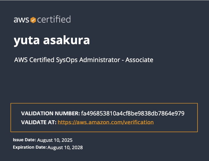 これで6つ目のAWS認定資格となり、アソシエイトレベルの三冠(ソリューションアーキテクト・デベロッパー・SysOps)を達成しました。 この認定は近く廃止され、新しい「AWS認定クラウドオペレーション – アソシエイト」に置き換えられますが、以前から受験予定を立てて準備を進めていたため、無事に最後のタイミングで取得することができました。 SysOpsは、他のアソシエイト資格と異なり、AWS環境の監視・運用・自動化といった現場寄りの管理スキルに特化しています。 学習を通じて、以下の分野を重点的に強化しました。 • AWS上でのワークロードのデプロイ、運用、管理 • CloudWatch、CloudTrail、EventBridgeを用いた監視とアラート設計 • Systems ManagerやCloudFormationによる運用タスクの自動化 • 高可用性、耐障害性、バックアップ戦略の設計 • インシデント対応とトラブルシューティング • IAM、KMS、ネットワーク設定によるセキュリティ強化 • コストとパフォーマンスの最適化 今回の認定を通じて、AWS環境を安全・安定・効率的に運用し続けるための運用基盤の重要性を改めて実感しました。