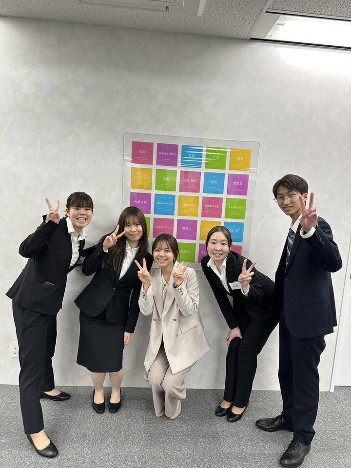 今年入社した新卒と📷 初めて自分が採用に携わったメンバーが入社し、やりがいを感じています。