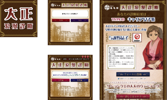 Facebookにより、手軽に参加できる診断アプリを開発。大正の魅力を潜在的に訴求しました。