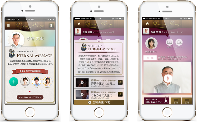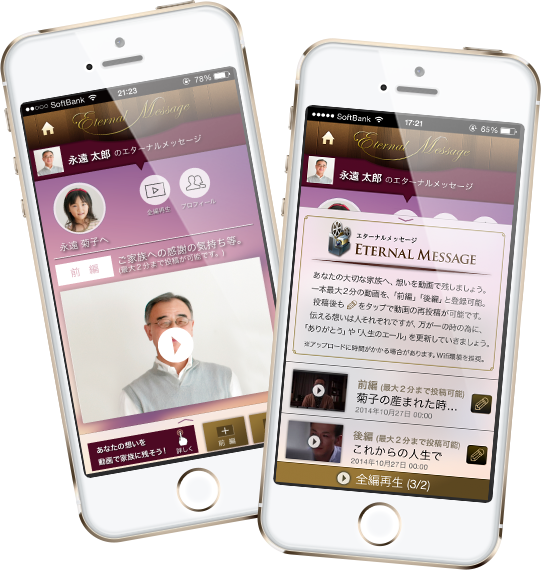 エターナルメッセージは大切な家族にあなたの想いを動画や写真としてのこしていくサービスです。