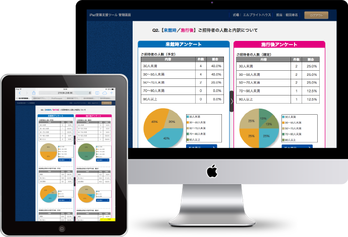 お客様のデータ保管はもちろん、来館時からお客様の気持ちの変化を収集するアンケートシステム、様々