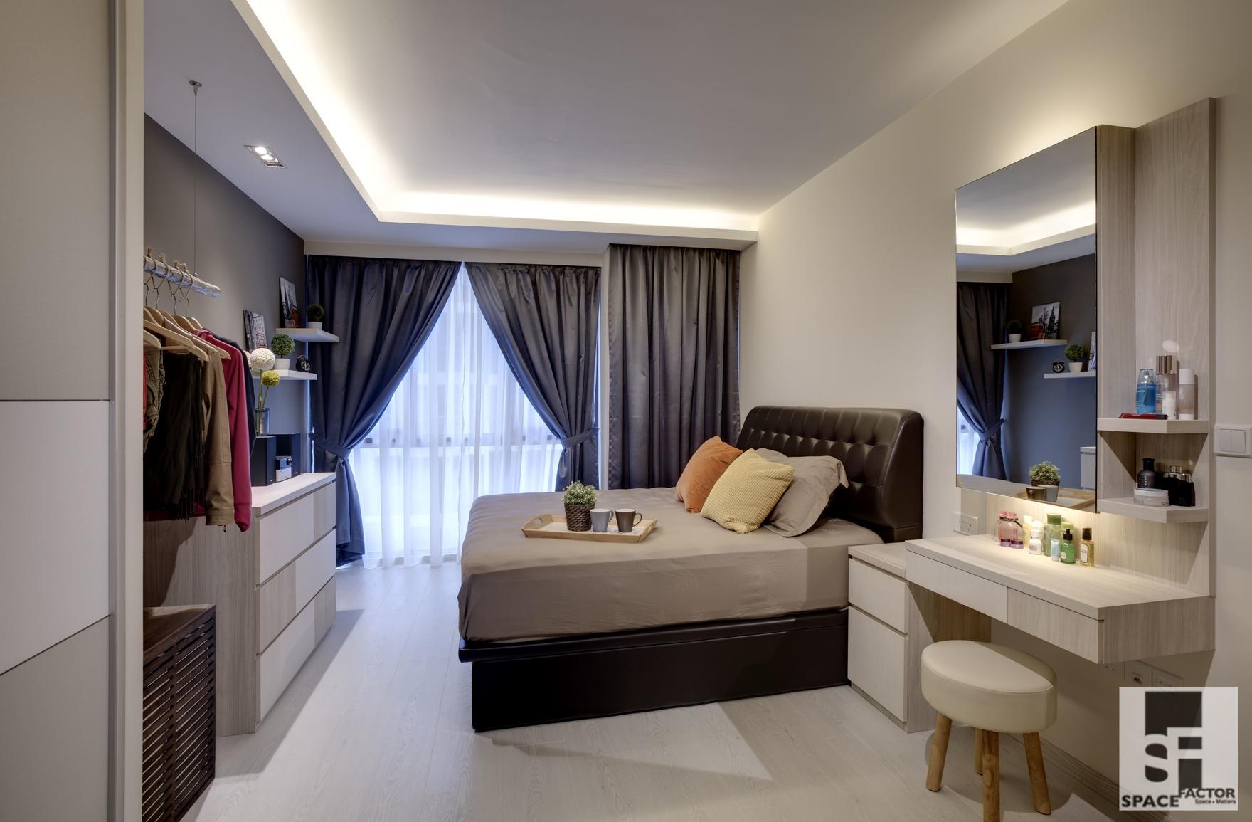 To keep the missus happy, the master bedroom features a sleek ceiling-hung rail for wardrobe essentials and a minimalist yet plush vanity table.