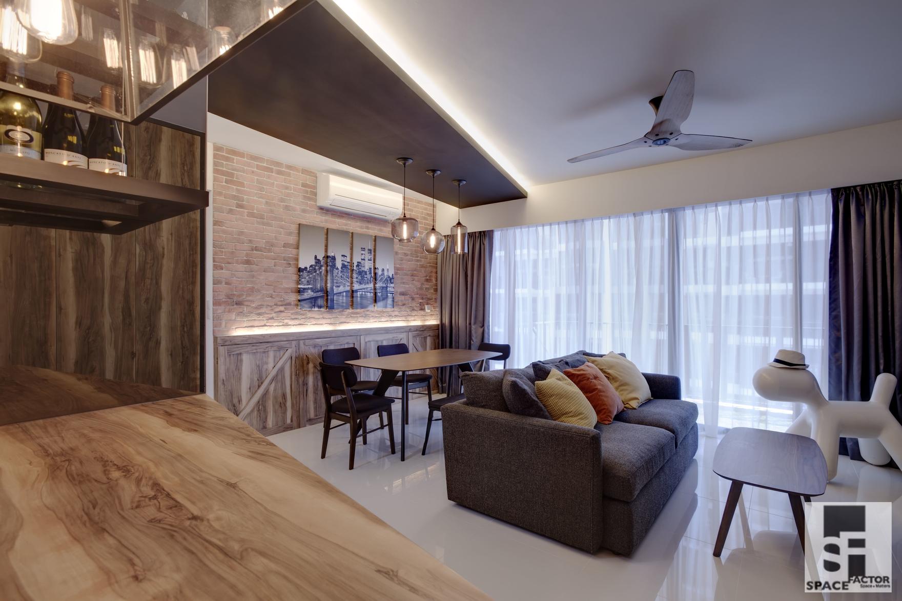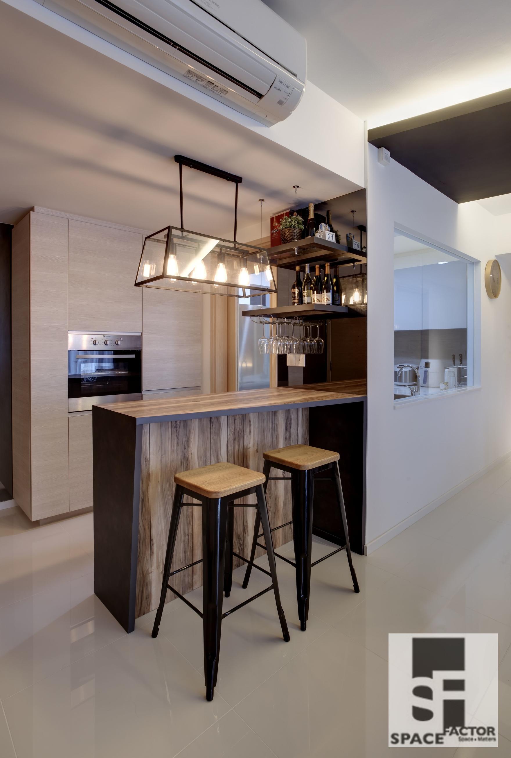 The living and dining areas were seamlessly combined, while a bar counter offers a perfect, central setting for entertaining guests.