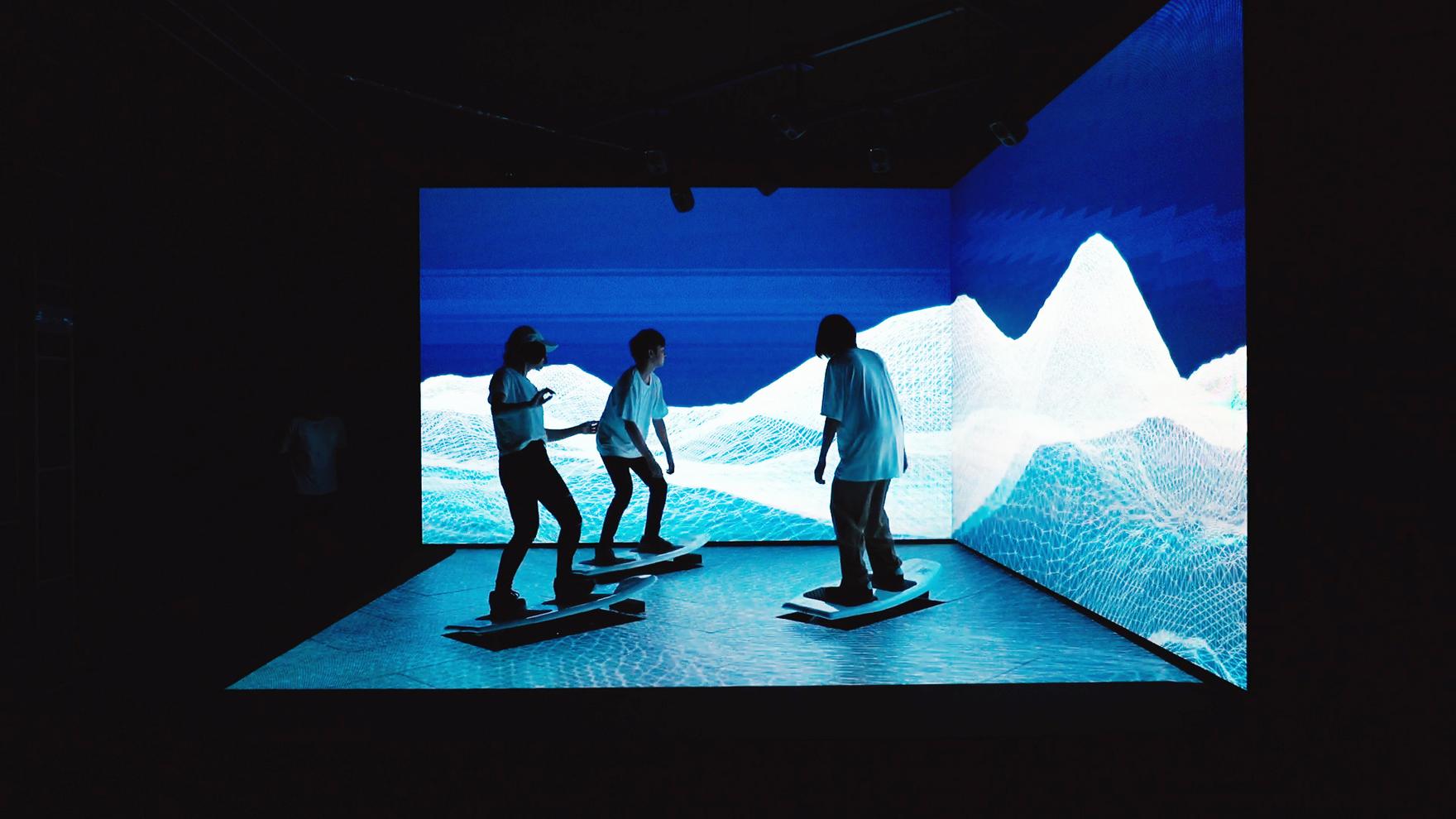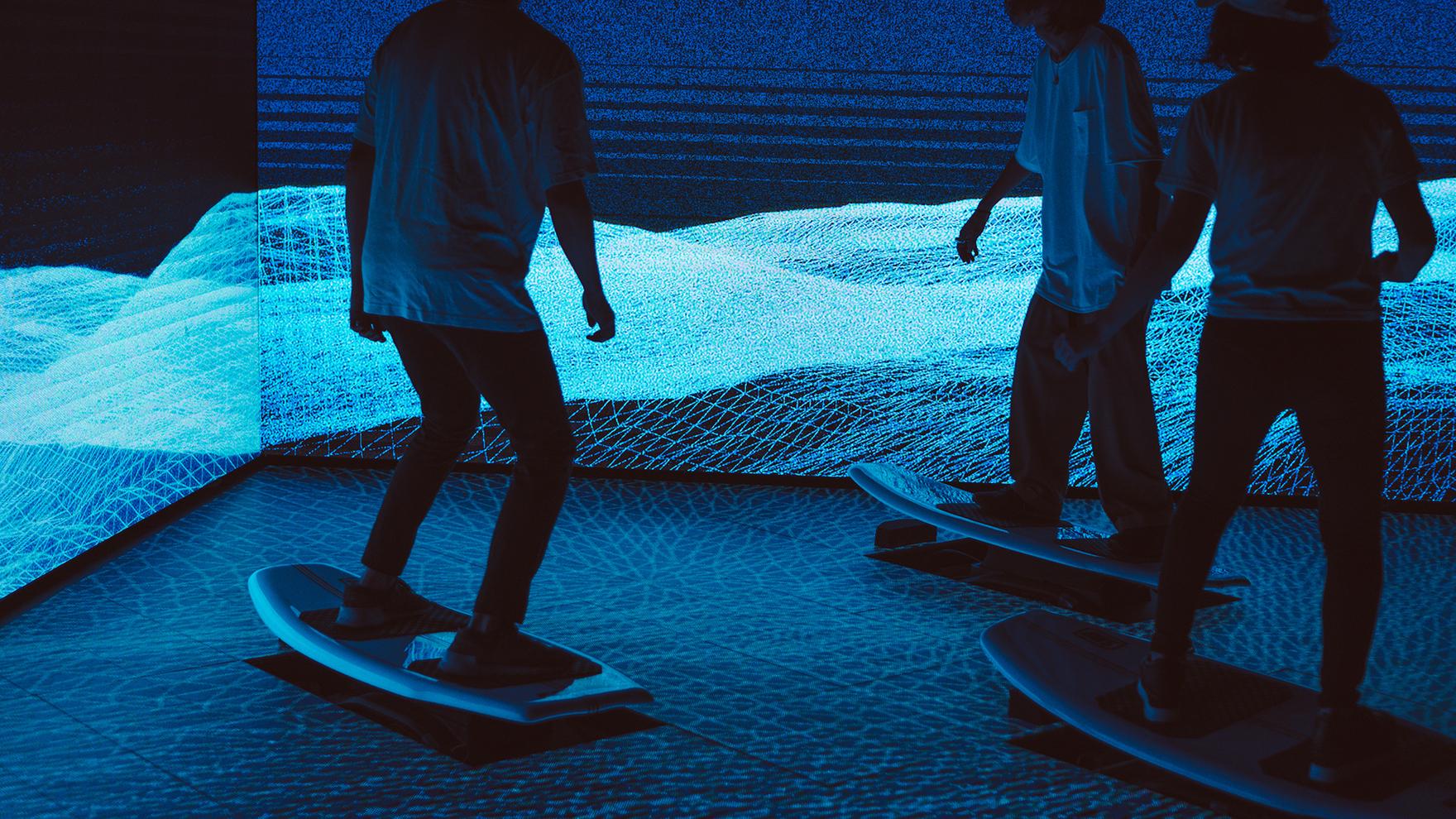IMG SRC、NTT、KAKEZANによる共創プロジェクト「BIT WAE SURFIN'」を制作しました。BIT WAVE SURFIN’は、都市空間で楽しむデジタルサーフィンです。スクランブル交差点の歩行者の流れを解析し取得したデータを元に、デジタルな波”ビットウェーブ”を生成します。さらに、波の動きに連動して設置されたサーフボードが動作します。タイミングを合わせてボードに乗り、波乗りを楽しむインスタレーションとなっています。