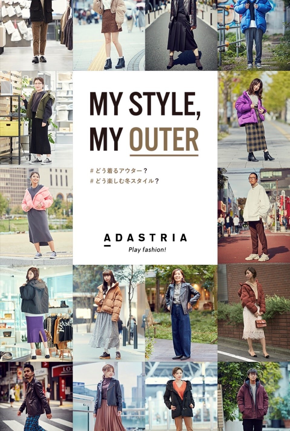The company Adastria, with its slogan "Play fashion!" has started its third across-brand campaign, "MY STYLE, MY OUTER," which focuses on their outerwear. On a special site, over 100 people from a wide variety of backgrounds, like painters, photographers, chefs, androgynous men, and familiar shop staff introduced more than 200 unique outfits, rich in variety.