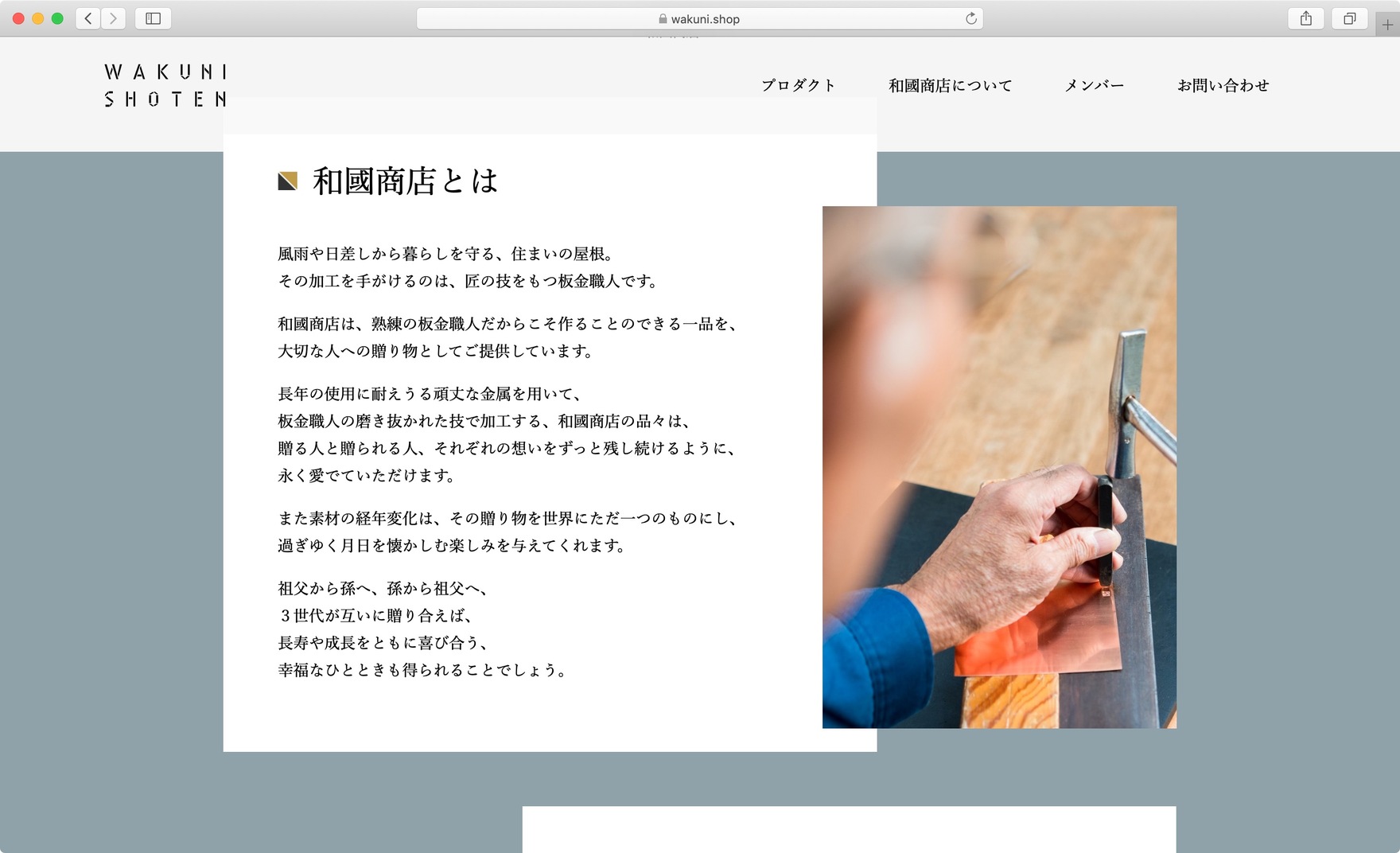 東京都東村山市にて、熟練の板金職人による屋根の修理を中心に人々の家を支えてきたウチノ板金。そんな地域を大切にする企業が、板金職人たちの雇用安定化のために立ち上げた事業が和國商店です。