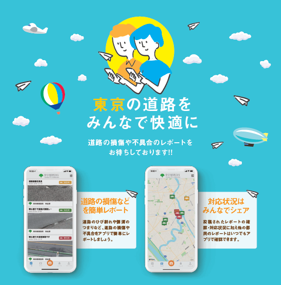 My City Report は、「市民協働投稿サービス」のMy City Report for citizensと「道路損傷検出サービス」のMy City Report for road managersの2つがあります。