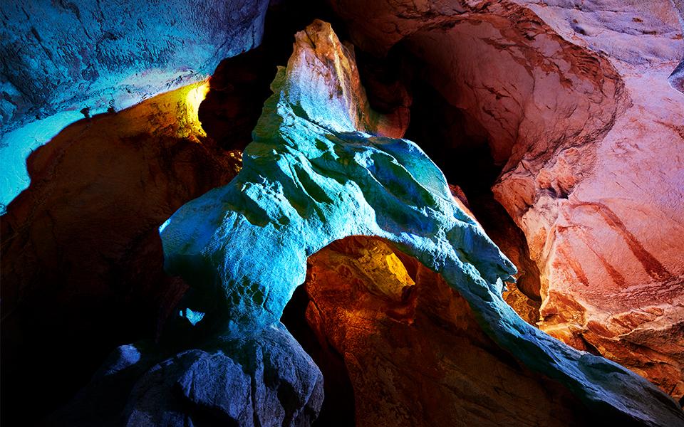 国内初の洞内大型プロジェクションマッピングによる音と光の総合的な演出やサイネージの刷新、