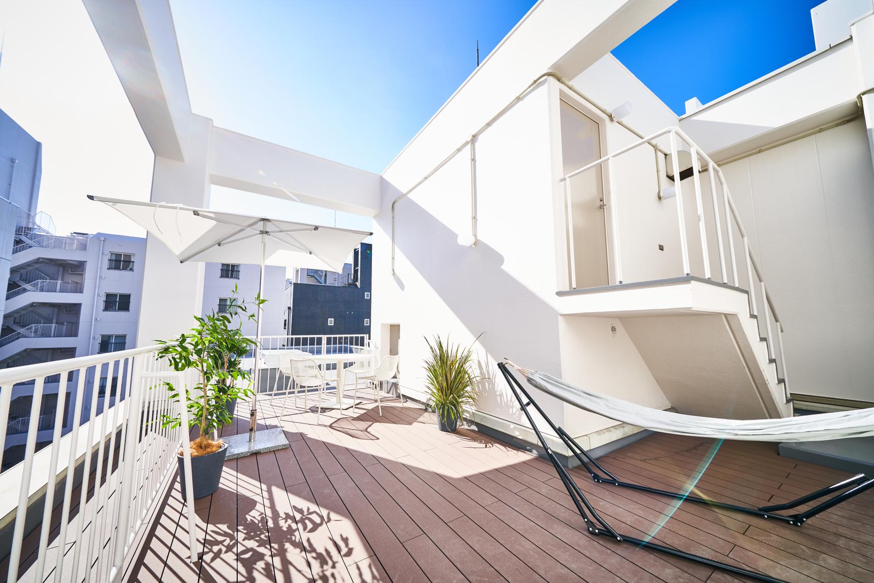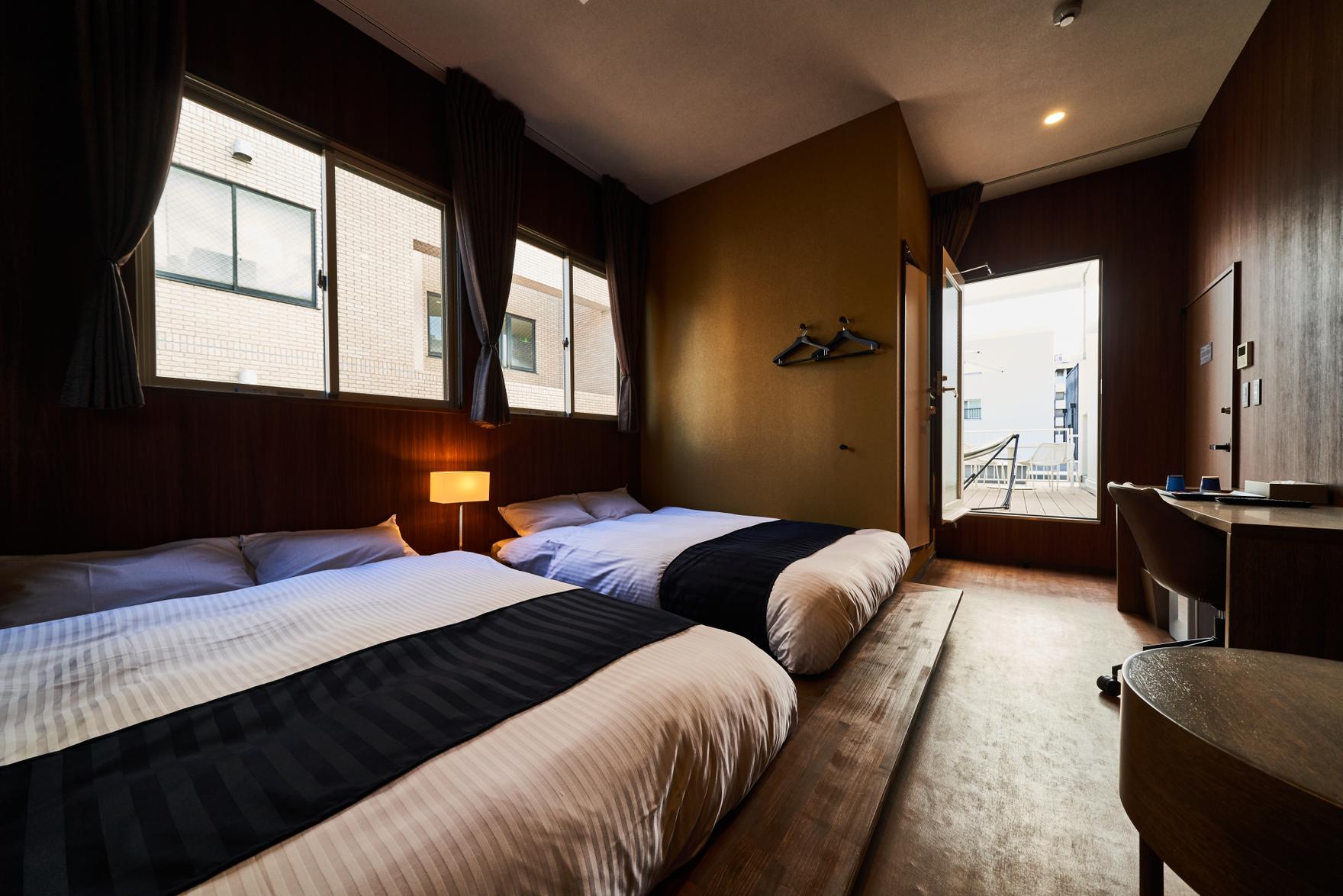 全室に水回りを完備し、1階と2階にはラウンジ、最上階にはテラス付きプレミアムルームを備えています。心斎橋へのアクセスも良好で、関西観光の拠点として外国人旅行者に人気です。