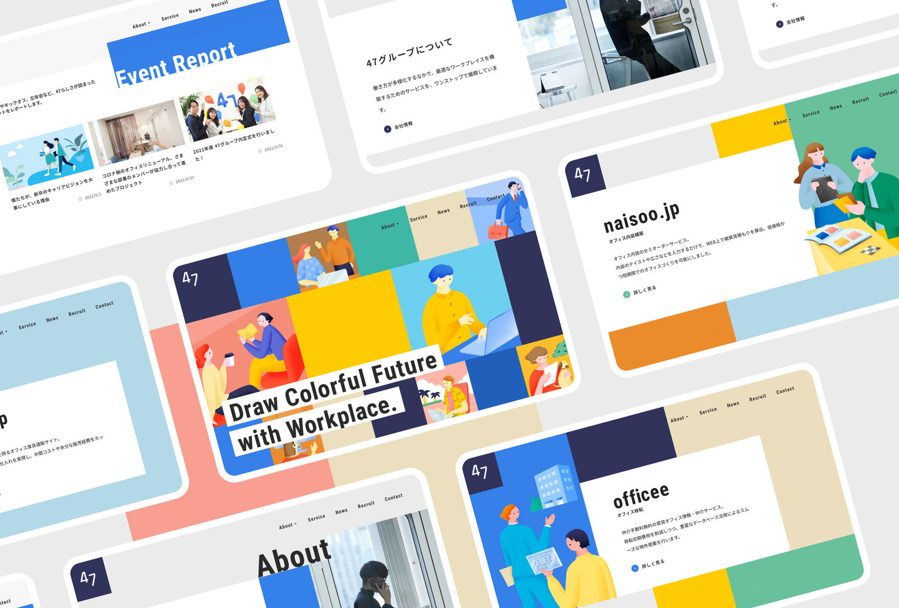 47グループ全体のコーポレートサイト再構築にあたり、VI構築、Webサイト制作業務を担当いたしました。