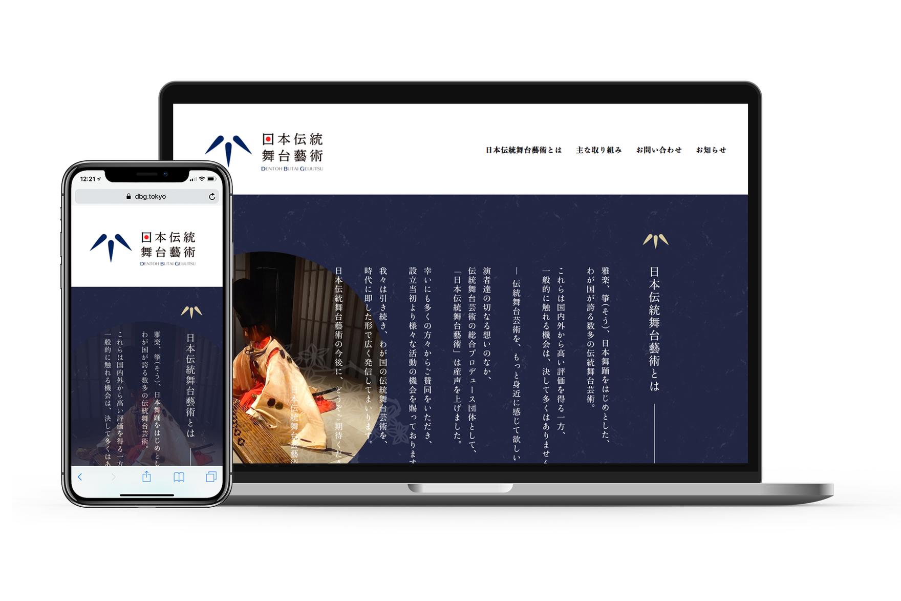 日本伝統芸能の上演・プロモーションを行う団体「日本伝統舞台藝術」のロゴデザイン、ならびにオフィシャルサイトのデザイン・制作をいたしました。