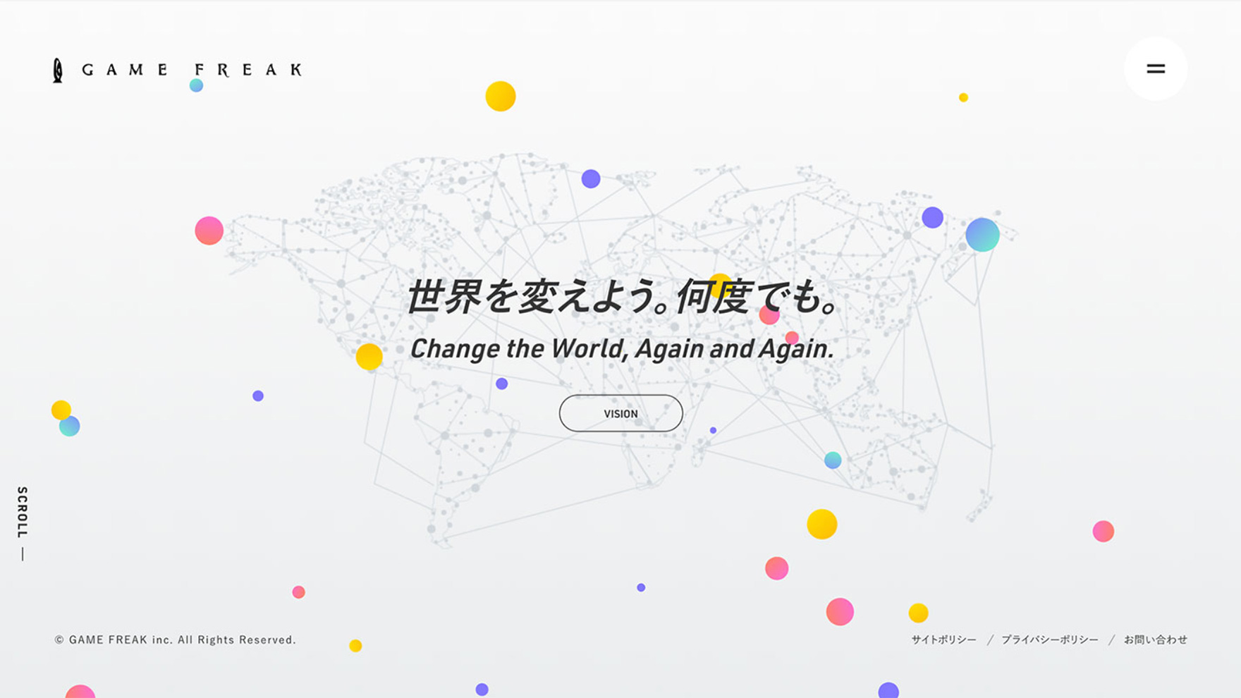 家庭用ゲームソフトやスマートフォンゲームを企画開発する株式会社ゲームフリークのコーポレートサイトリニューアルに伴い、クリエイティブディレクション、アートディレクション、サイト構築、CMS開発、ビジュアル開発を行いました。日本が世界に誇るゲームシリーズを開発し世界中のファンをワクワクさせ続けてきた同社のクリエイティビティと、高い技術を持つクリエイターが自分らしく力を発揮し、次々と新しいアイディアが生まれる社風の表現を軸にページを構成しています。